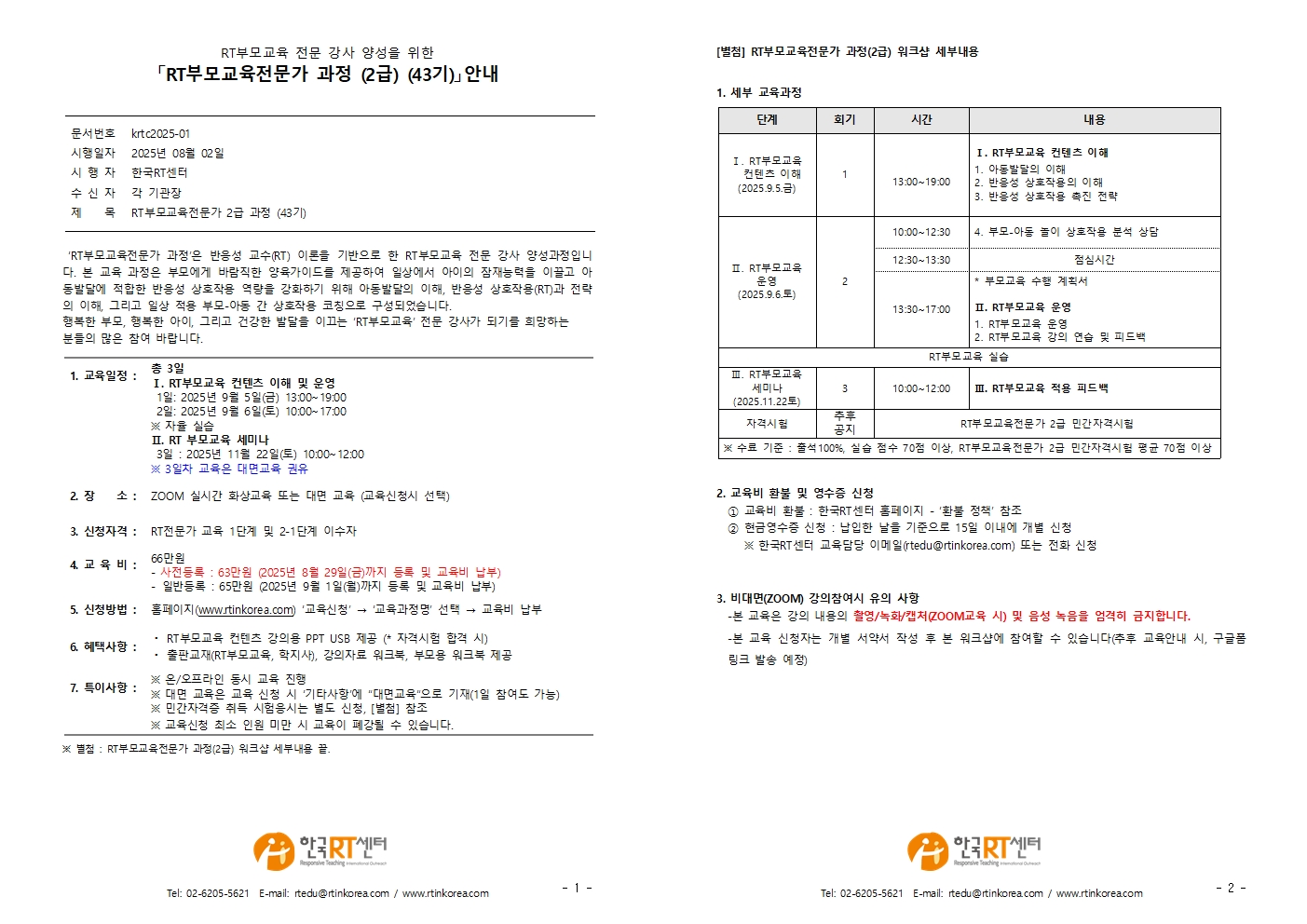 25년 RT부모교육전문가교육 전문강사 양성과정 안내